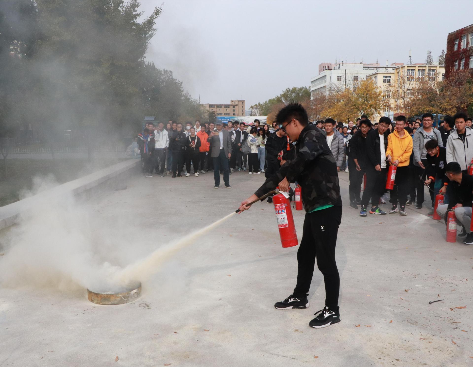 在灭火器使用演习过程中,消防科仇立峰老师向参演员工介绍了消防安全知识,系统地阐述了火灾发生的原因、危险性及其预防措施,保卫处工作人员现场为同学们演示了灭火器的使用和维护方法及注意事项,并指导同学们亲身参与干粉灭火器的使用操作,规范、快速地完成了灭火过程。