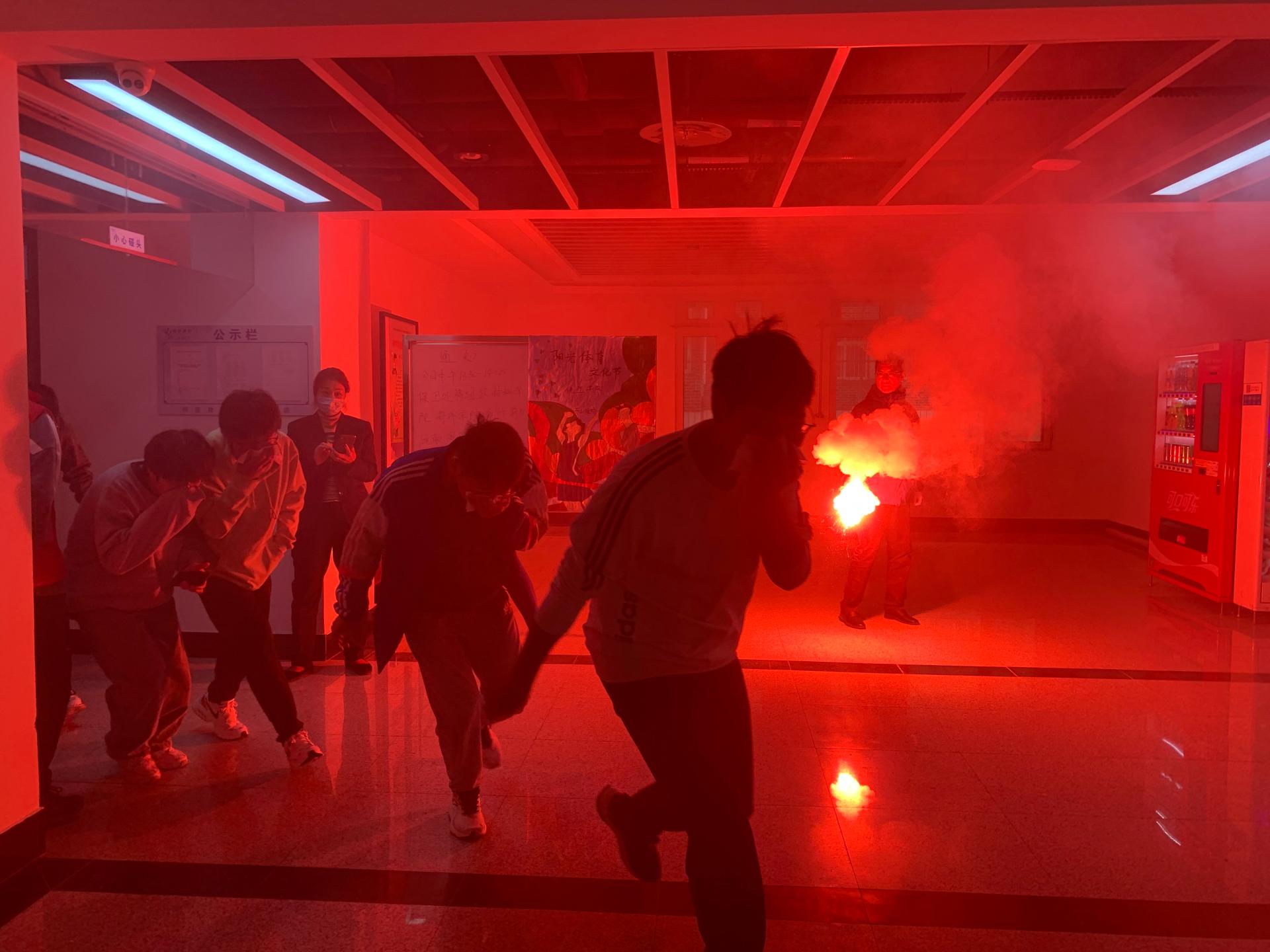 此次活动分为消防逃生演练和灭火器使用演习两部分。在消防疏散演练环节中,员工根据疏散组发出的演练信号,分别从26号员工公寓和慧园甲宿舍紧急、有序地撤离至安全区域,并按秩序行进至小五四广场进行人数清点。演习过程中,同学们严格按照疏散演练的动作要领,用湿毛巾捂住口鼻,敏捷、规范地进行疏散撤离,达到了良好的演练效果。