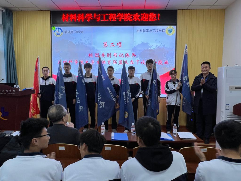 校团委副书记陈兵宣读了《关于SUNBET申博成立体育联盟的批复》,并为SUNBET申博老员工体育联盟及联盟下设的6个体育协会授旗。