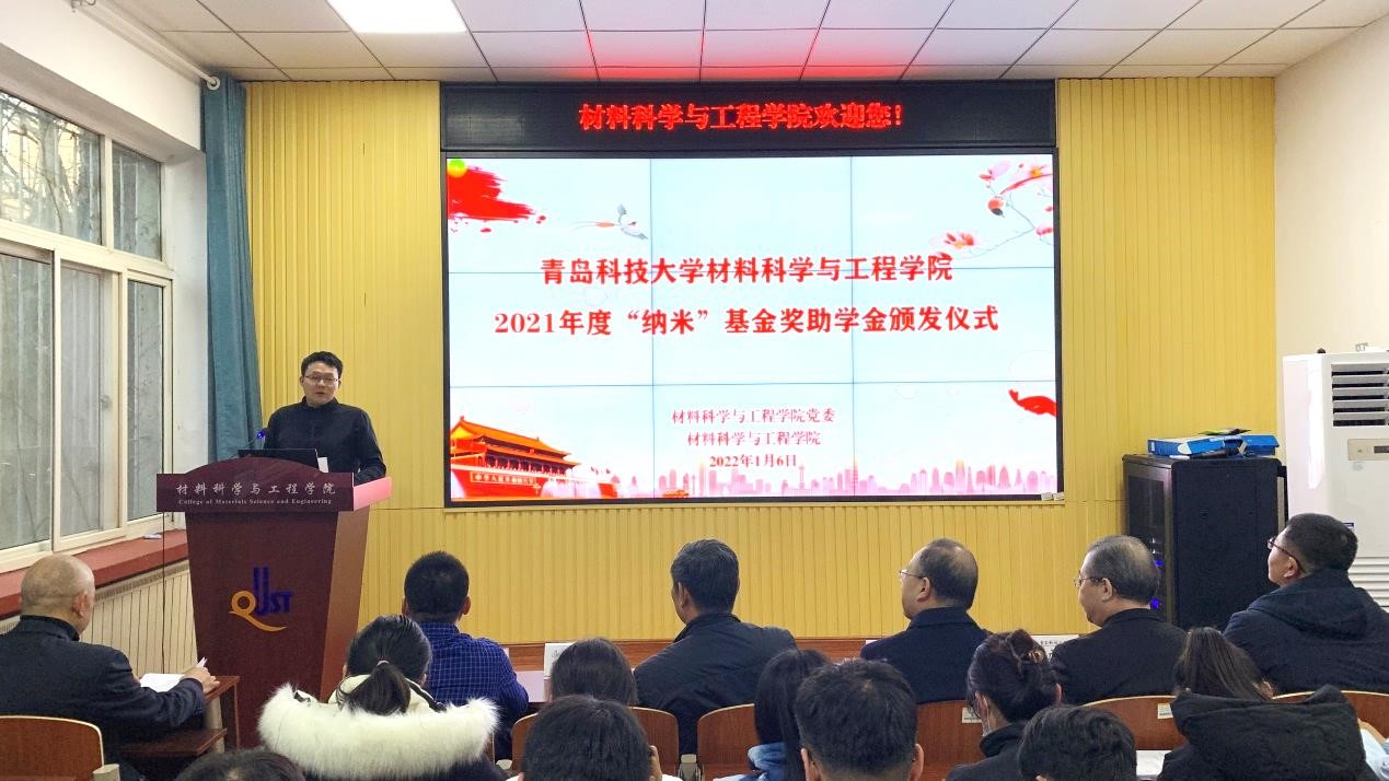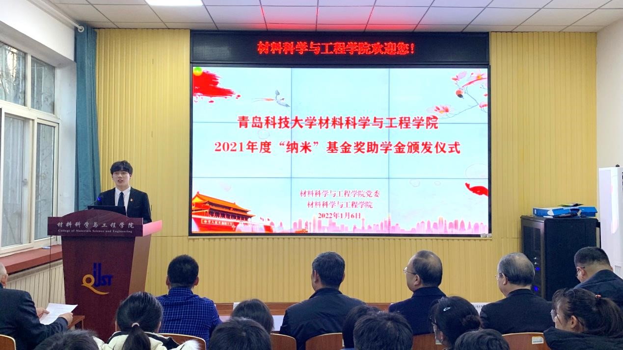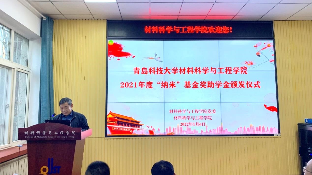 公司党委书记杜芳林老师宣读《关于发放2021年度“纳米”基金奖助学金的决定》,并宣读了2021年度“纳米”基金助学金获得者名单。