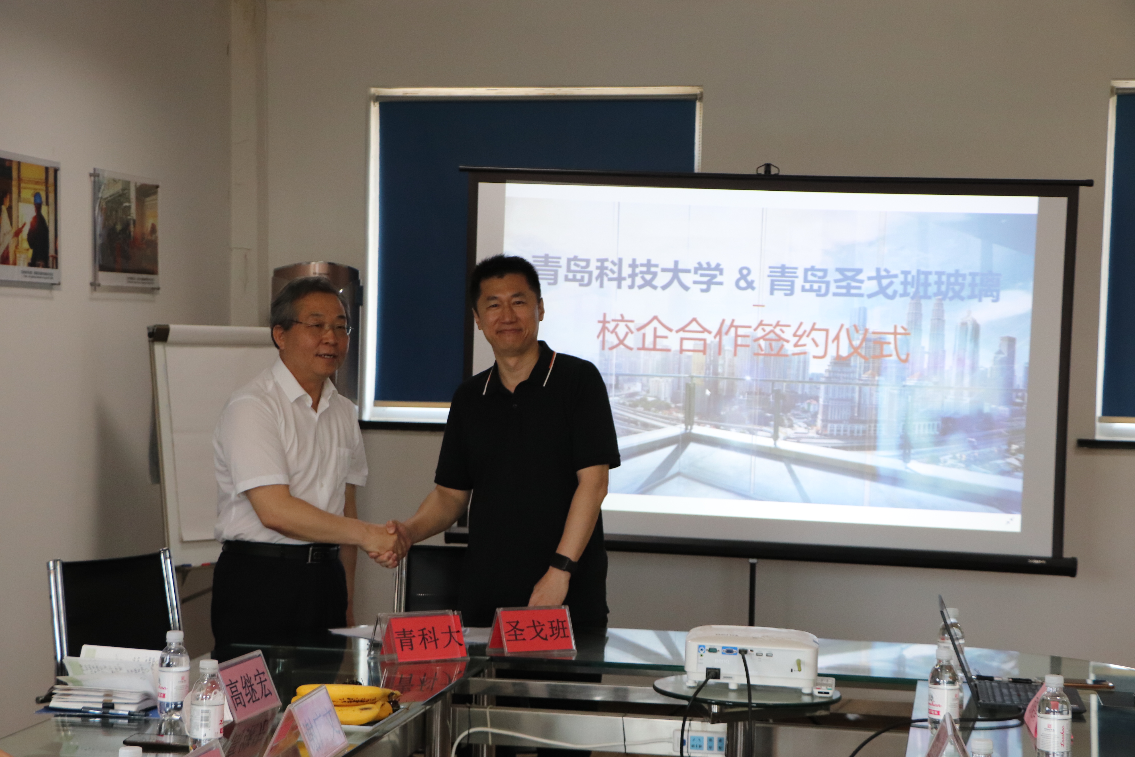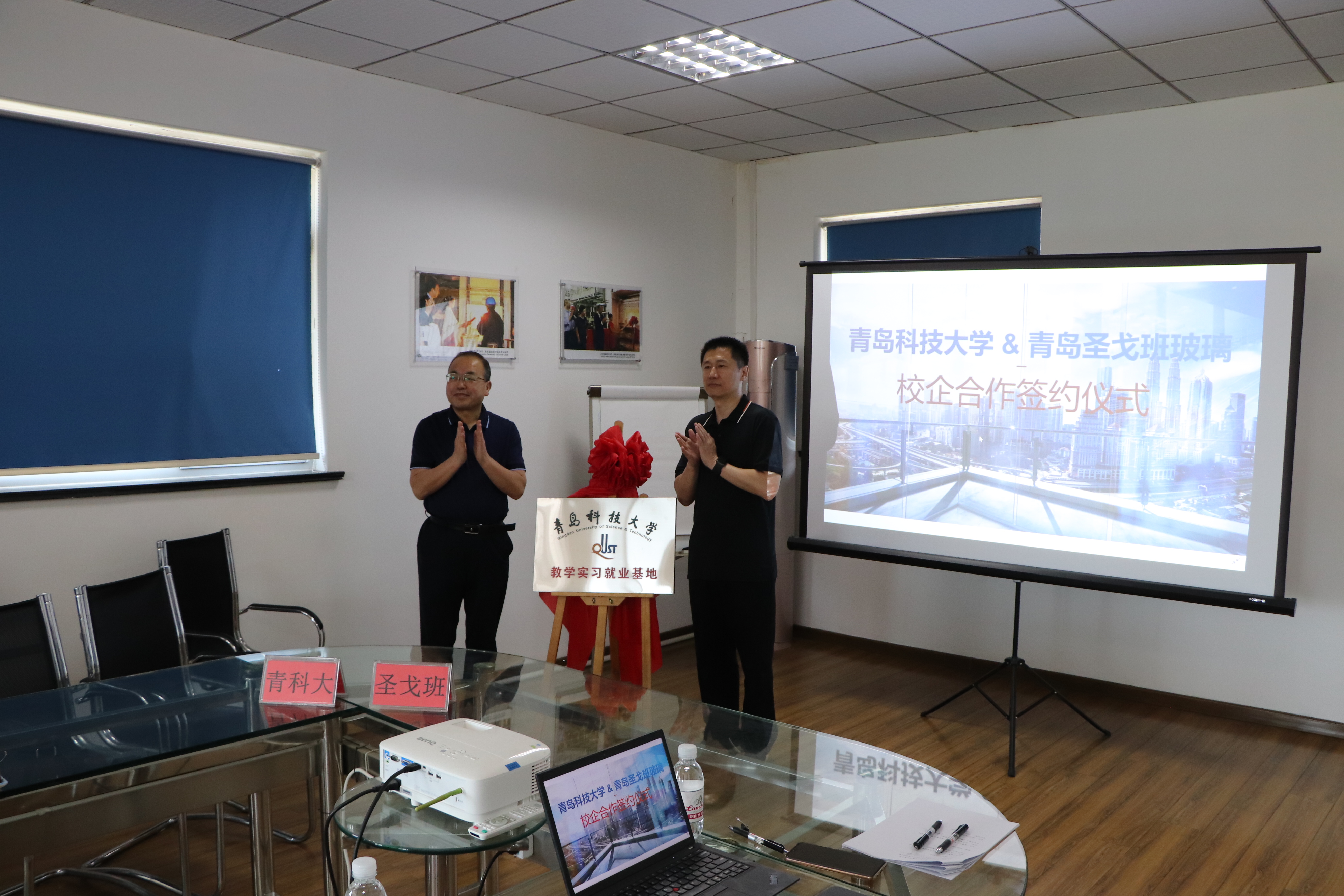 5月31日,公司党委常委、副董事长丁林、公司经理谢广文一行到青岛圣戈班玻璃有限公司走访调研,并举行校企合作签约及教学实习就业基地揭牌仪式。仪式在青岛圣戈班玻璃有限公司会议室举行,公司总经理惠钧、财务总监管鲁峰、工业总监王丕刚、人力资源部经理顾晓娟、公司副书记高继宏、副经理于薛刚及部分教师代表参加了仪式。