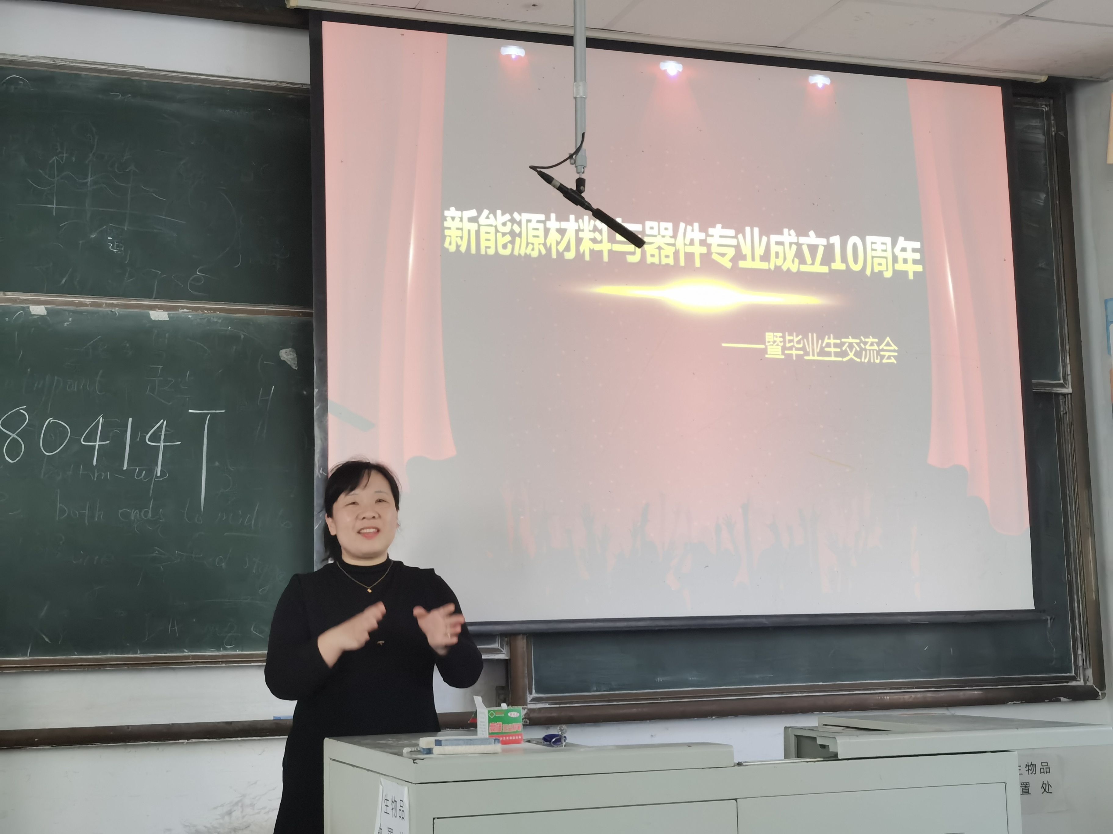 十年春秋,风华正茂;十载耕耘,硕果累累。值SUNBET申博SUNBET申博新能源材料与器件专业成立十周年之际,能材专业于5月16日下午三点在第一教学楼103教室举办“毕业生交流会”活动。公司党委副书记葛夫国、SUNBET申博副经理李桂村、新能源材料与器件专业教研室主任孙琼出席活动并发表致辞。姜欣悦、张硕等九位能材19级优秀毕业生代表及专业全体同学参加活动。