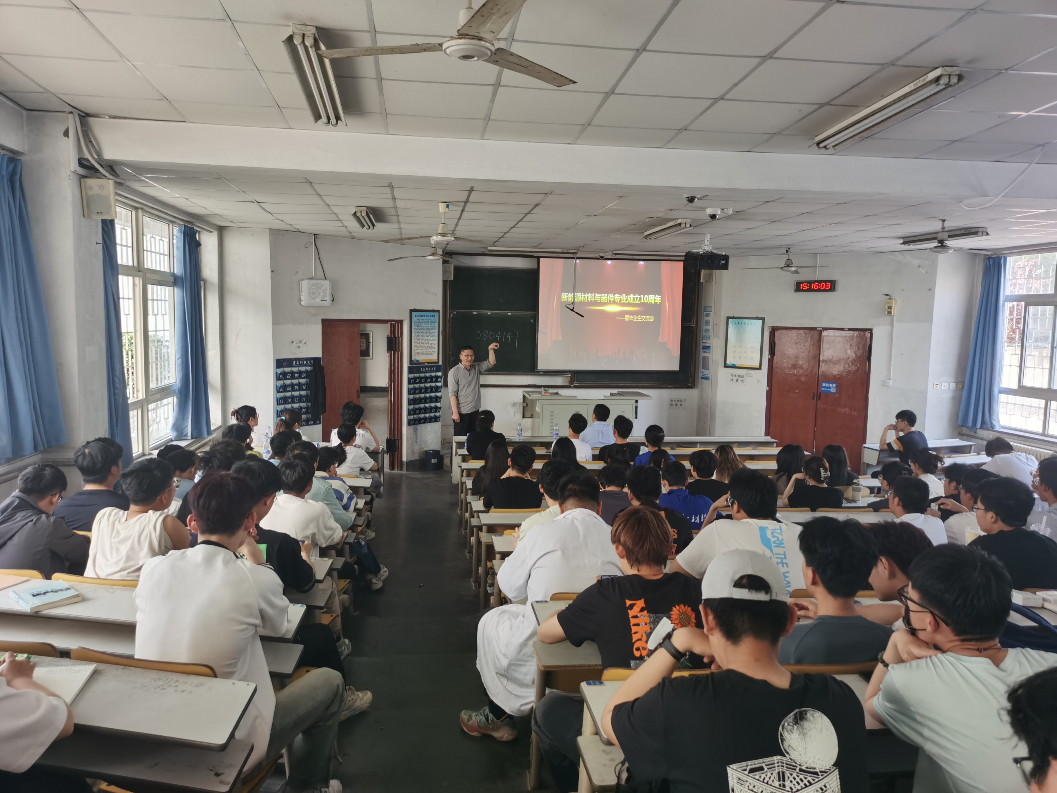 李经理就“新能源材料与器件专业代码—080414T”中“T”的“特设专业”含义为引点,讲述了专业十年来课程体系改革、教学理念创新、教学方法改进等探索的历程。随后,他以专业成立至今的优秀学子为例,肯定了十年来能材专业的培养质量与培养特色。并强调了能材学子应以知识学习、技能培养和价值塑造为追求,明确了同学们的奋斗目标。