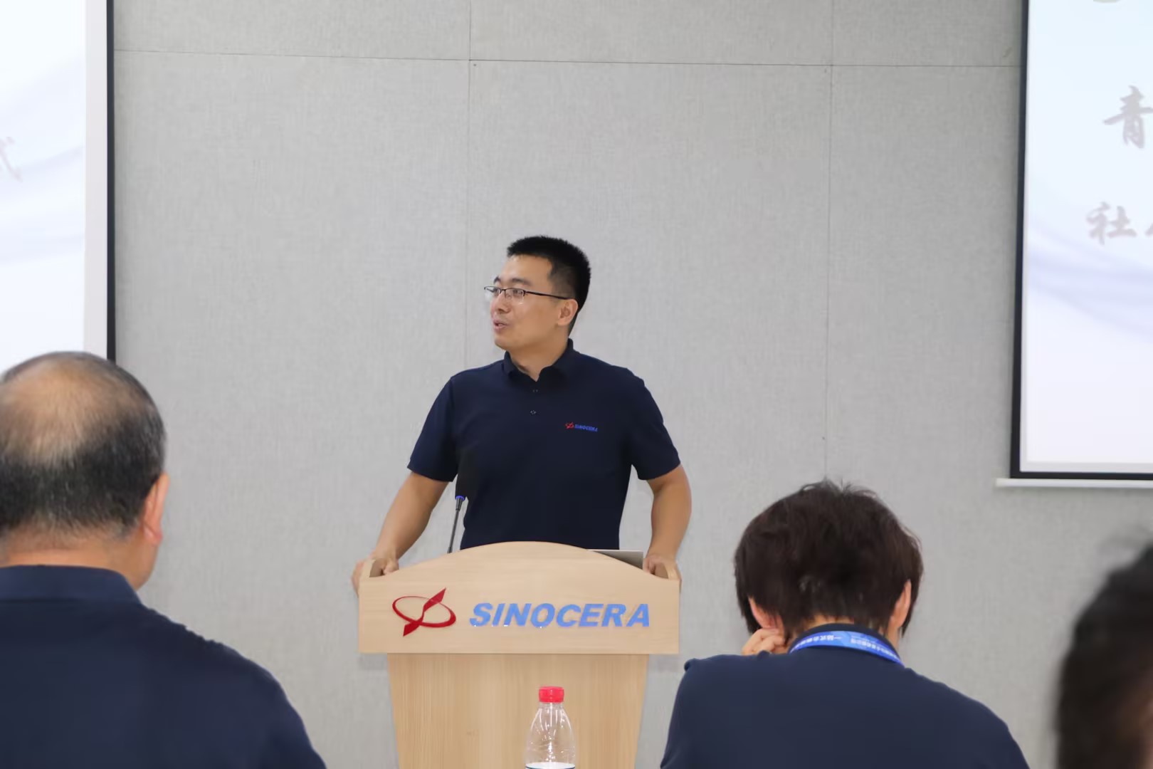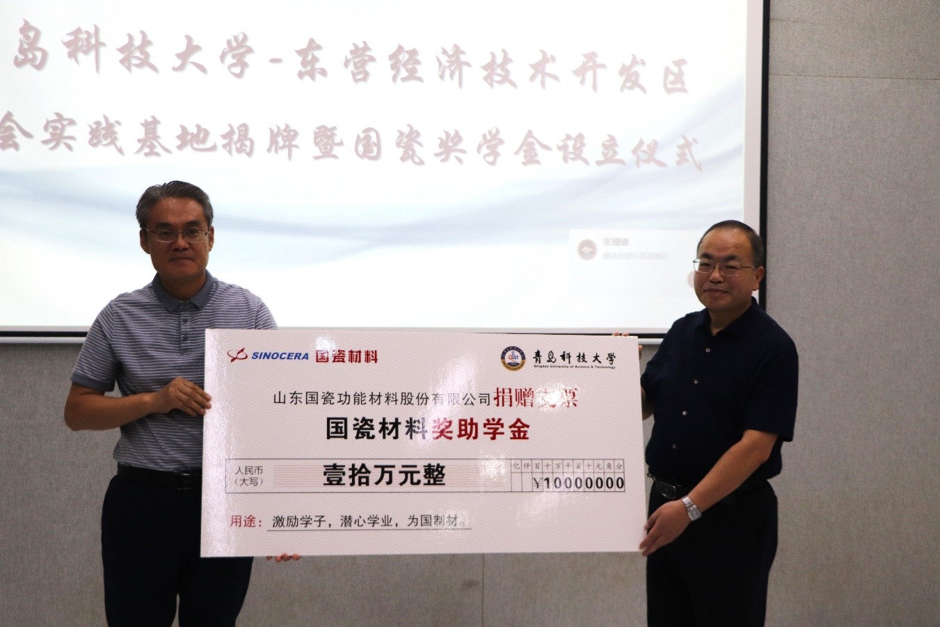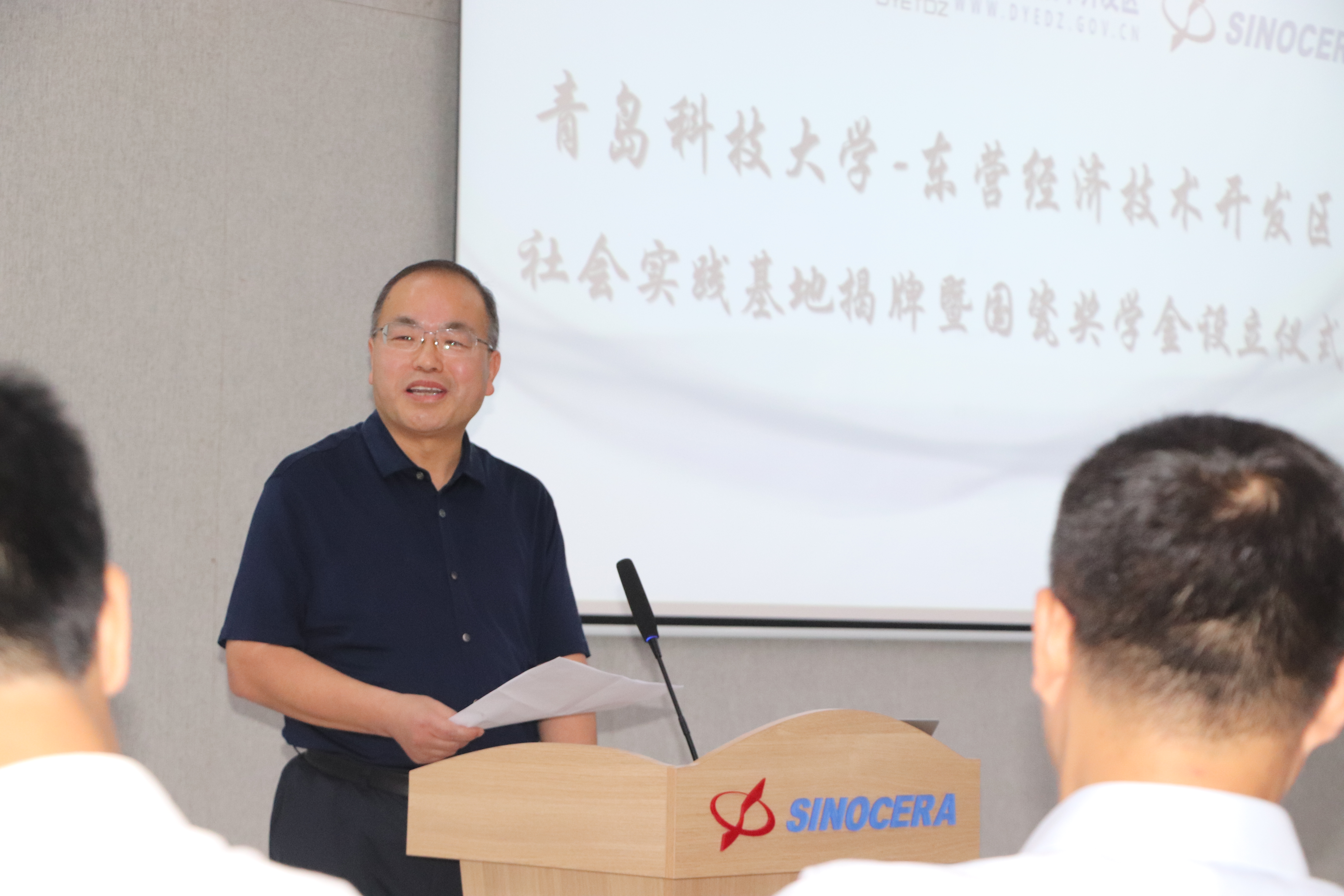 为进一步深化校企合作、产教研融合,提升协同育人质量,7月19日下午,公司党委常委、副董事长丁林、公司经理谢广文、党委书记孟照国、校团委书记刘跃宁、员工处副处长徐华、研究生院副经理王伟一行赴山东国瓷功能材料股份有限公司(简称山东国瓷)开展走访交流并举行社会实践基地揭牌仪式暨国瓷材料奖助学金设立仪式。东营市经济技术开发区党工委委员、组织人事部部长李旭山,山东国瓷董事、首席技术官宋锡滨、总经理霍希云、人力资源部总监李银果等出席仪式。仪式由东营经济技术开发区组织人事部副部长王琨主持。