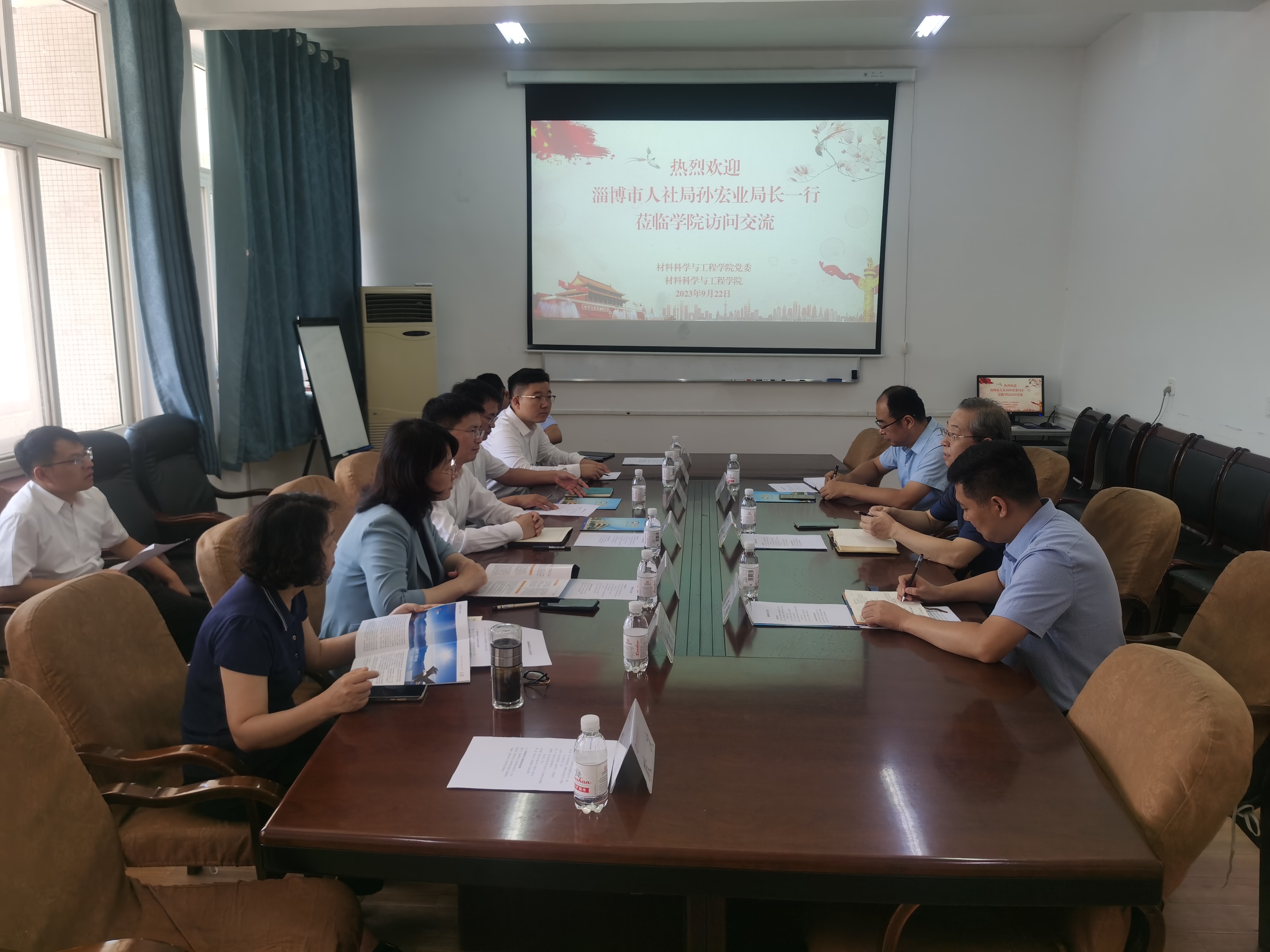 9月22日上午,淄博市人社局来公司访问交流,并在203会议室举行座谈。淄博市人社局党组书记、局长孙宏业,淄博市人社局党组成员、淄博市公共就业和人才服务中心党委书记、主任吕红星,桓台县委常委、组织部长、三级调研员王润芹,桓台县副县长、公司副教授赵平等参加座谈会。公司经理谢广文、党委副书记兼副经理葛夫国、副经理于薛刚出席座谈。