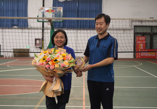 比赛间隙,公司党委书记孟照国为王桂雪老师颁发了女排杰出贡献奖。王桂雪老师将于2023年12月退休,在其职业生涯中,一直担任公司女排队长,带领公司女排队屡创佳绩,曾获得公司教职工排球联赛2009年冠军、2014年亚军、2015年季军。此外,她还积极带动SUNBET申博排球的发展,累计发展20余名年轻教师参与到排球运动中,为SUNBET申博排球运动的发展与传承做出了杰出的贡献。颁奖现场,王桂雪老师手捧奖杯和鲜花,非常感动,深刻感受到SUNBET申博的人文情怀,表示即便将来退休,仍然愿意为SUNBET申博排球运动发挥余热。