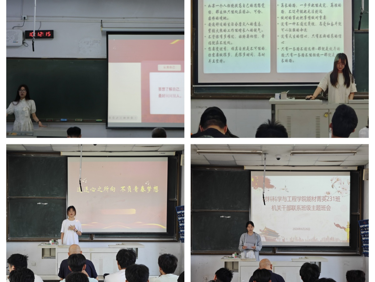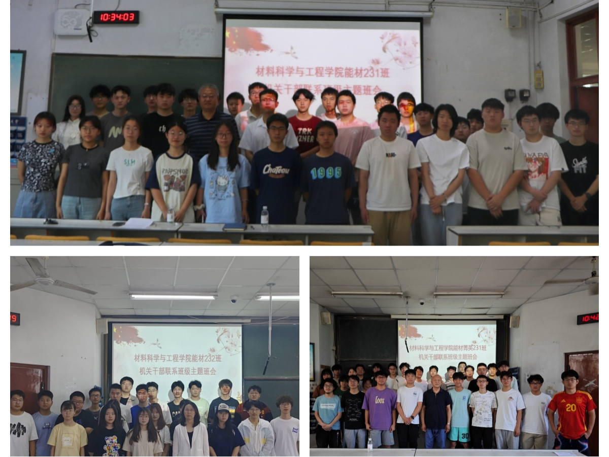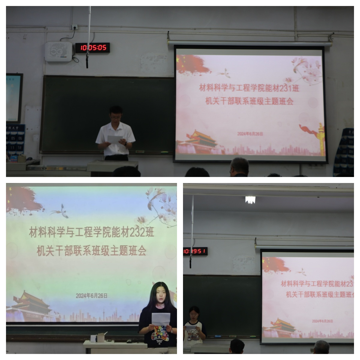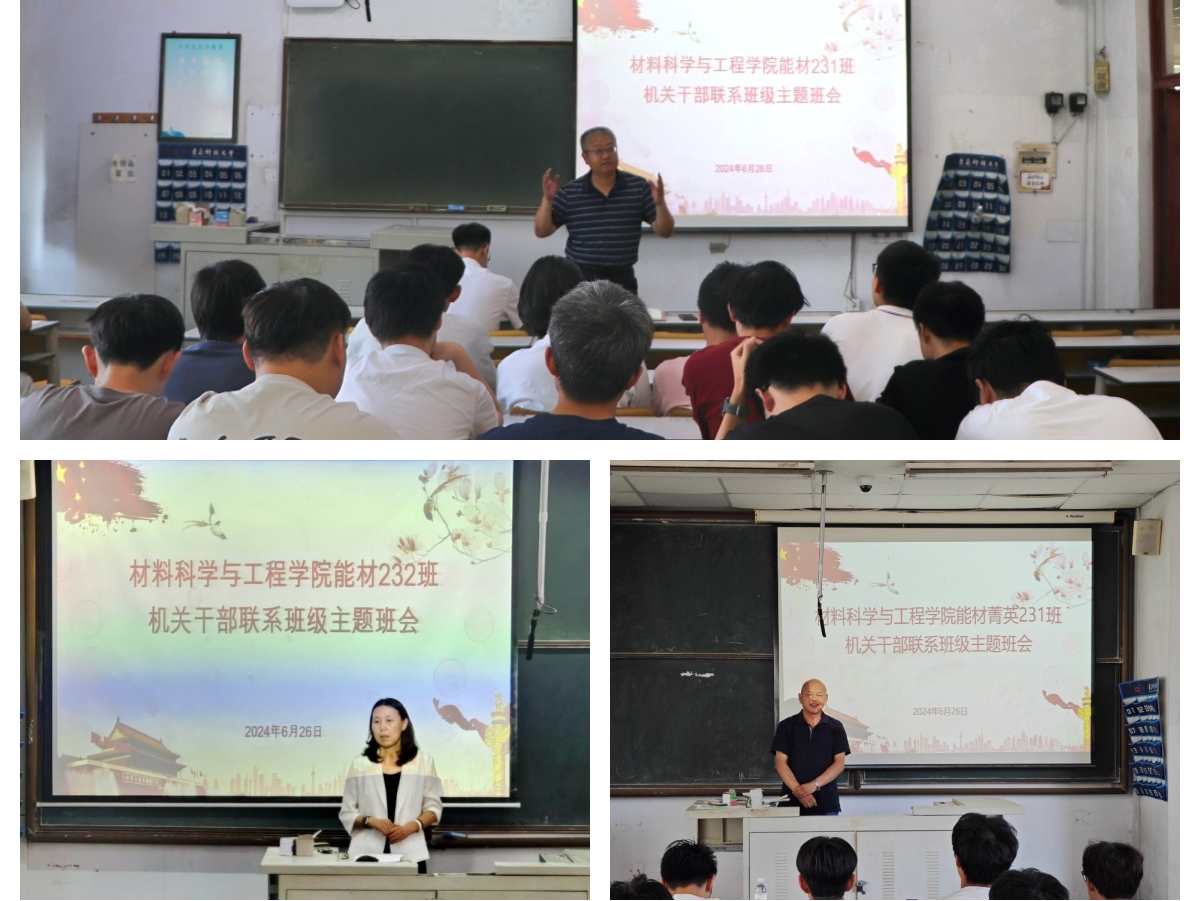 为深化全员参与、全程跟进、全面覆盖的育人模式,加强领导干部与员工之间的日常沟通,进一步加强班级的团结和凝聚力,公司能材菁英231班、能材231班、能材232班于6月26日上午分别在一教303、307、302举办了机关处级干部联系班级系列主题班会。公司工会主席郭永、妇委会主任兼工会副主席李淑贞、工会副主席高继宏作为联系班级的机关部门处级干部分别出席班会,2023级辅导员柳锡远主持各班班会。