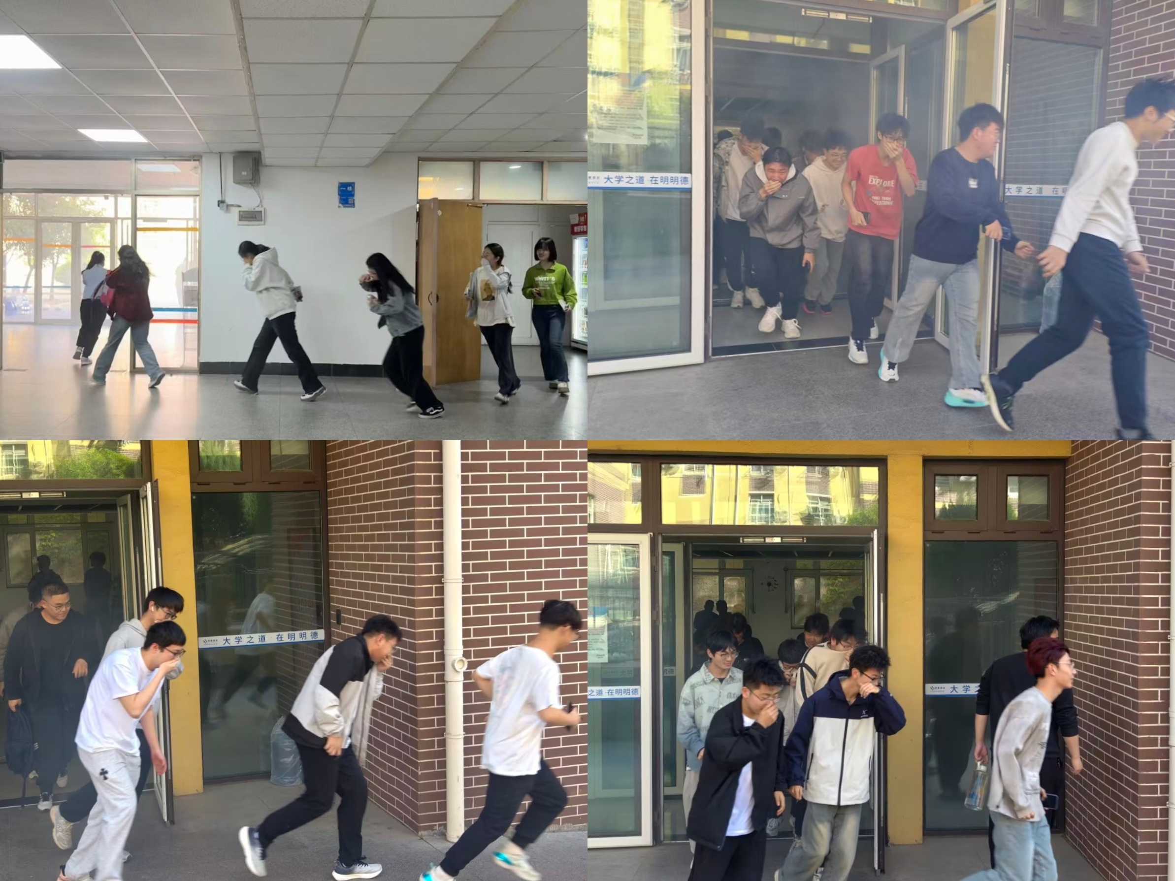 此次活动分为消防疏散演练、消防安全知识讲解和灭火器实操演习三部分。随着演练信号发出,全体员工迅速按预定方案行动,在各楼层负责人引导下,沿疏散通道有序向小五四广场集合。疏散过程中,同学们保持低姿、捂住口鼻,行动安全高效,整个演练紧张有序,展现出良好的应急反应能力和团队协作精神。