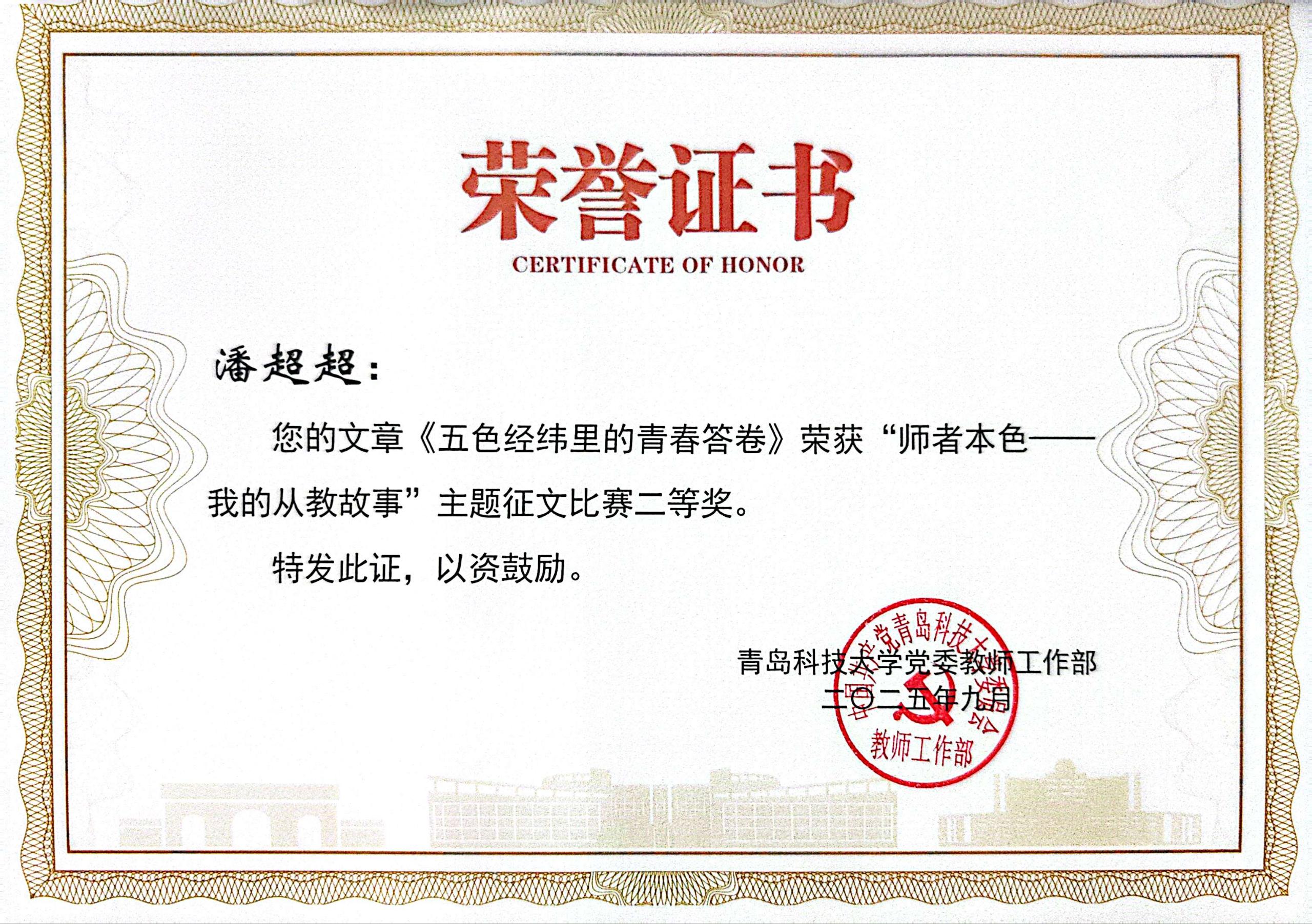 公司王兆波老师的文章《师者之路:以仁爱为灯,助力员工成长》荣获“师者本色—我的从教故事”主题征文比赛一等奖;单妍老师的文章《磨砺教学本领,启迪智慧心灵》荣获“师者本色—我的从教故事”主题征文比赛一等奖;潘超超老师的文章《五色经纬里的青春答卷》荣获“师者本色—我的从教故事”主题征文比赛二等奖;孙琼老师的文章《育梦为光,守护成长之路》荣获“师者本色—我的从教故事”主题征文比赛三等奖。