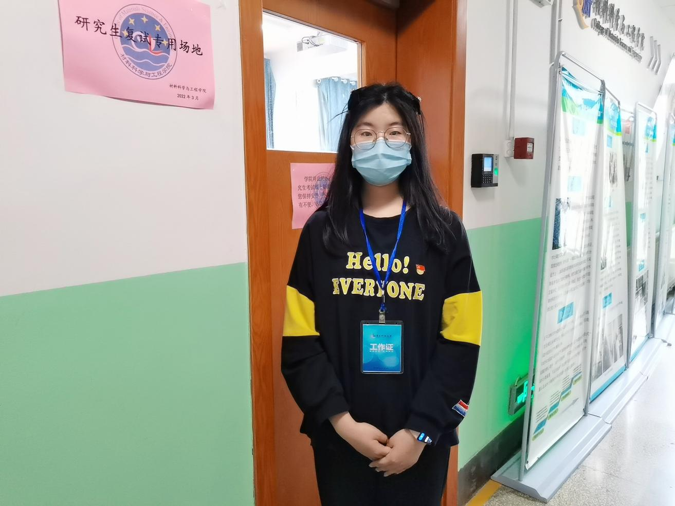 助力考研复试,快速投身志愿服务一线。在校“封闭管理”志愿服务期间,为确保给研究生复试同学提供安心的复试环境,积极组织、调度支部党员分工协作,快速高效地对研究生复试场地预约登记、协调、沟通工作;带头组织支部党员进行候场守护和巡楼工作;提供和征集志愿服务手机支架,减少复试同学因手机支架紧缺带来的困扰。在研究生线上复试守护现场,王钰影总是面带微笑,入场时,“同学,请不要紧张,安心复试就好,我们会一直在门外守候。”复试结束,“同学,放平心态,相信自己,你肯定没问题的。”在疫情肆虐的特殊时期里,她总能通过乐观向上的心态和任劳任怨的志愿服务,给在紧张复试的每名同学投放温暖、坚实、有效的“定心丸”。