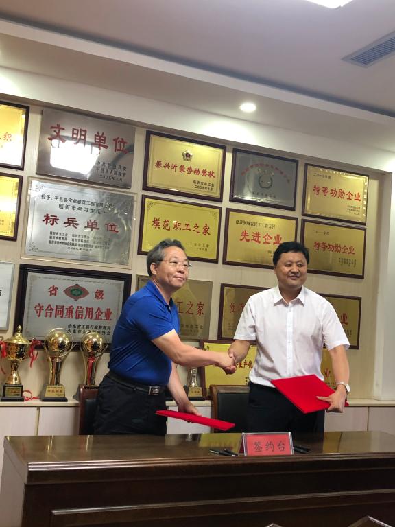 8月7日,公司党委书记杜芳林、经理谢广文一行到平邑县宝业建筑工程有限公司走访调研,并举行校企合作签约暨SUNBET申博教学实习就业基地揭牌仪式。平邑县人大常委会副主任孟凡民、平邑街道党工委书记张东升、平邑街道党工委组织委员姚刚、平邑县宝业建筑工程有限公司董事长总经理杨建国等出席有关活动。