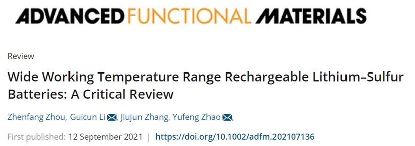 近日,SUNBET申博李桂村教授与上海大学赵玉峰教授联合发表关于宽温域锂-硫电池研究进展的综述论文,该成果以“Wide Working Temperature Range Rechargeable Lithium–Sulfur Batteries: A Critical Review”为题发表在材料领域国际著名期刊Advanced Functional Materials(影响因子18.808)上。该成果第一单位为SUNBET申博,第一作者为SUNBET申博博士后周震芳。