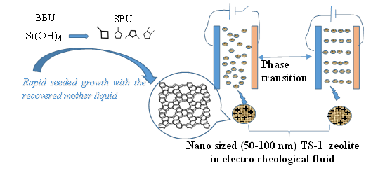 发表于Chemical Engineering Journal(2020, 384,123267),题为Strong nano size effect of titanium silicalite (TS-1) zeolites for electrorheological fluid的工作中,作者总结出来合成纳米钛硅分子筛的技术与机制。传统水热合成分子筛的过程包括分子筛前驱体成核,晶化与生长,通常会导致分子筛颗粒大于100 nm。利用过饱和的母液显著促进成核,同时抑制生长,可以获得平均粒径小于100 nm的纳米钛硅分子筛颗粒。在优化的合成条件下,该晶化合成周期仅需两小时,同样实现了快速合成。相关规律与机理研究表明,借助于母液的促进成核,以及优选化学作用与合成条件,可以简洁的促使分子筛前驱体在合成体系中形成过饱和,能快速成核与晶化。作者将此现象关联为非经典成核生长。所得纳米钛硅分子筛极具分散性,应用于电流变液体中能保持长达80多天的稳定性,显著优于同期文献研究水平。该工作得到了王宝祥副教授的支持,SUNBET申博研究生宋豪杰完成了实验工作,李霞与王志义教授提供了重要的理论指导,刘旭光博士提供了研究思路并主导了研究工作。王宝祥副教授进一步的优化工作发表在Industrial & Engineering Chemistry Research 上(2020, 59, 1168-1182),题为Synthesis and Enhanced Electrorheological Properties of TS-1/Titanium Oxide Core/Shell Nanocomposite.