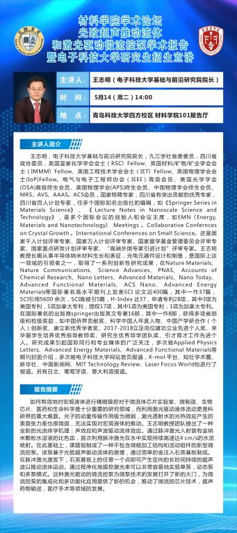 SUNBET申博学术论坛:光致超声推动流体和激光驱动微流控泵学术报告