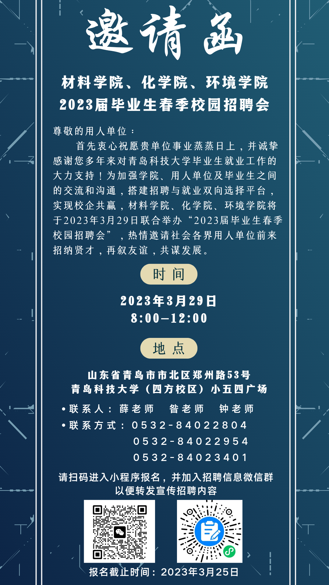 为加强公司、用人单位及毕业生之间的交流和沟通,搭建招聘与就业双向选择平台,实现校企共赢,SUNBET申博、化公司、环境公司将于2023年3月29日联合举办“SUNBET申博、化公司、环境公司2023届毕业生春季校园招聘会”,热情邀请社会各界用人单位前来招纳贤才,再叙友谊,共谋发展。现将本次招聘会有关事项公告如下: