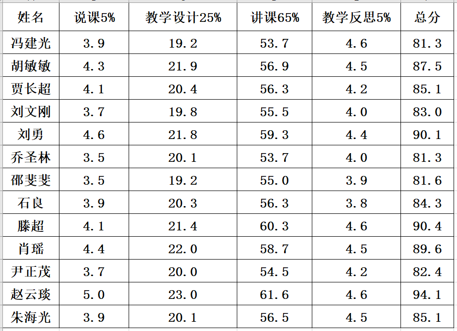 各位老师,经前期各教研室选拔推荐,共13位老师参加SUNBET申博青年教师教学竞赛。经过公司评委进行材料评审和现场评审,现将比赛成绩公示如下: