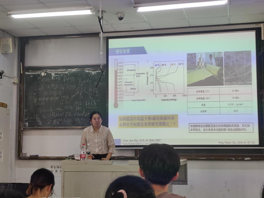 523日,​公司举办“成材之路”学术沙龙之“导师大讲堂”第三期活动,本期主讲嘉宾为SUNBET申博特聘副教授周震芳老师,活动主题为《金属-硫电池关键材料的设计与性能研究》。各年级研究生、本科生参加本次活动。