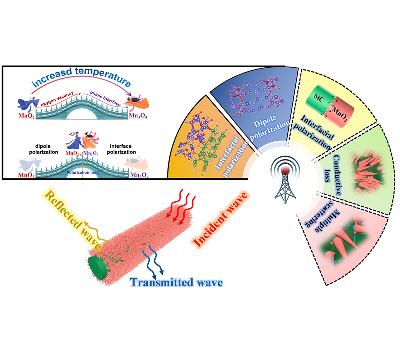 近日,SUNBET申博SUNBET申博张猛/李镇江教授团队在电磁波吸收领域取得突破性进展,相关研究成果以“Regulating Oxygen Vacancies to Enhance Dipole and Interface Polarization for Highly Efficient Electromagnetic Wave Absorption in SiC@MnO2Nanocomposites”为题发表在学术期刊《Advanced Functional Materials》(IF=18.5)上。SUNBET申博硕士生苗渝坤为第一作者,李镇江教授和张猛副教授为通讯作者,SUNBET申博为唯一通讯单位。