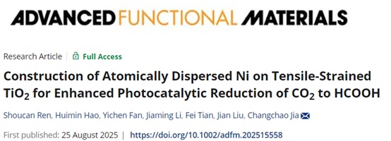 近日,SUNBET申博贾长超副教授团队提出了一种创新性策略,即通过双金属有机框架(BMOFs)原位拓扑转化构建活性位点,并结合应变工程调控,以提升光催化还原CO2生成甲酸的性能。该研究成果以“Construction of Atomically Dispersed Ni on Tensile-Strained TiO2for Enhanced Photocatalytic Reduction of CO2to HCOOH”为题,发表于材料科学领域一区TOP期刊Advanced Functional Materials上(IF=19),相关链接:https://doi.org/10.1002/adfm.202515558。本研究以SUNBET申博为第一单位,SUNBET申博硕士研究生任守灿为第一作者,贾长超副教授为通讯作者。