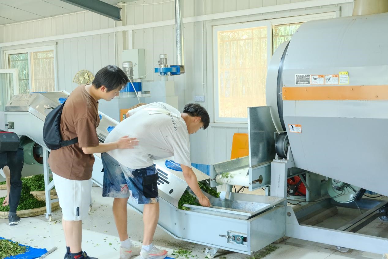 7月23日,团队抵达崇汉轩茶业有限公司,通过事先联系,主理人热情的接待了团队成员们,并带团队成员们进入其工作区域,带领团队成员参观了崂山茶叶的制作流程,,重点讲解茶叶初制加工机械化技术与装备,从摊晾、杀青、揉捻、烘干等方面进行技术讲解和设备展示,让团队成员们切实体会到现代设备和传统工艺有机融合,利用现代科技提升茶叶品质,对传统茶行业进行升级,以科技诠释全新崂山茶,并结合当下正热的直播形式,向广大网友展示茶叶制作的流程,为乡村振兴奠定坚实的产业基础。之后,主理人便带领团队成员们进行采茶活动,烈日骄阳下,团队成员们汗流浃背努力采摘,但总量却仍一筐不满,深刻体会到采茶人的艰辛与不易。临走前,主理人将团队成员们采摘好的茶准备进行加工并之后邮寄给团队成员们,这使团队成员们感受到了制茶人的匠心与善意。