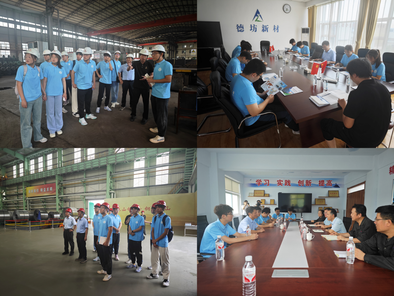 服务队于7月20日至21日上午依次访问了亿达新材料、力创科技、莱威新材料、希格斯新能源、德坊新材料、泰山钢铁六家企业,深入了解了企业运营及技术创新情况。通过听取企业领导的介绍,并实地参观生产线与研发中心,同学们对现代工业制造的精密高效、科技创新的核心价值以及材料科学的广泛应用有了更为深刻的认识。此次经历为同学们的专业学习和未来职业规划提供了重要参考,并打下了坚实基础。