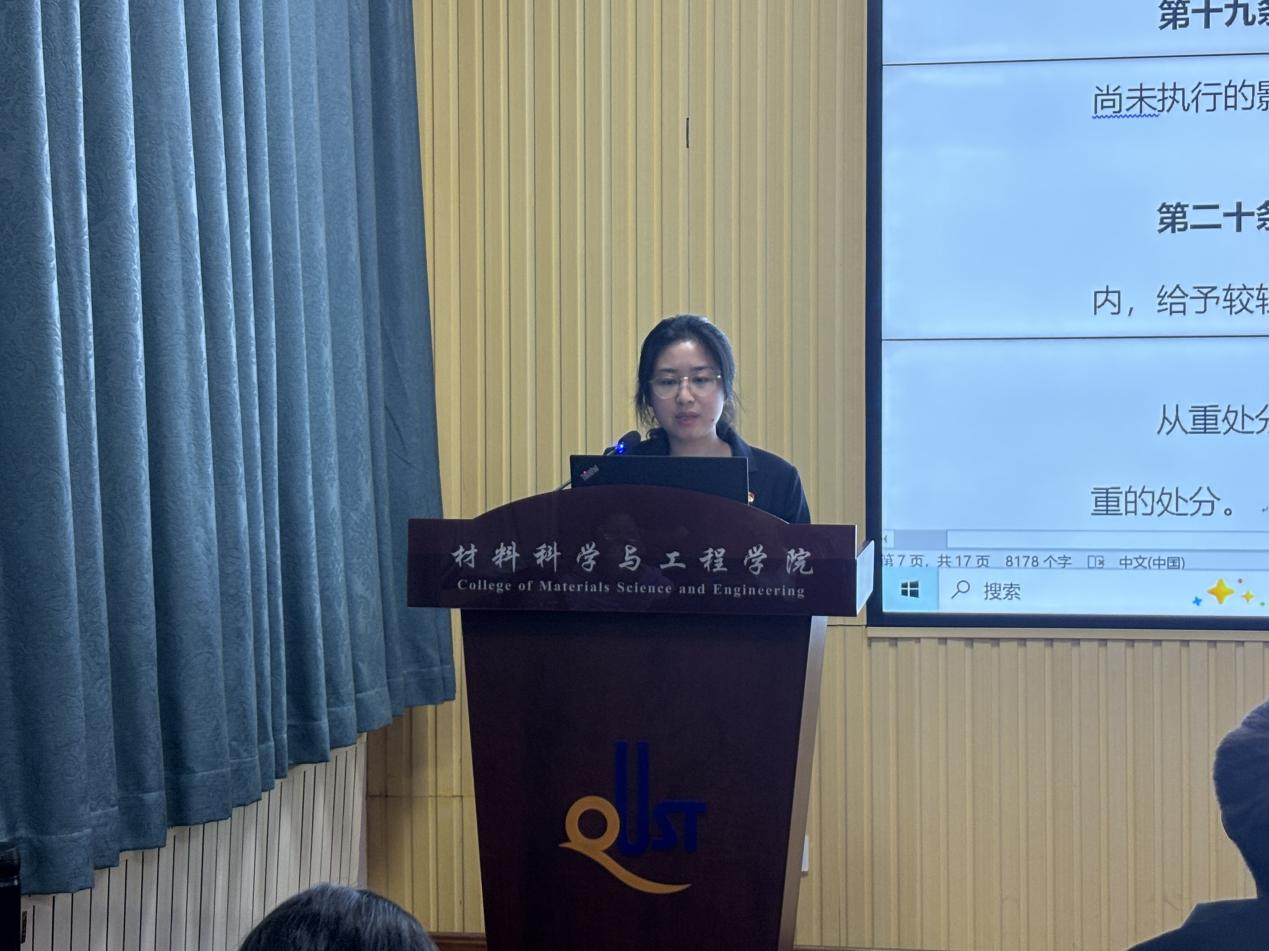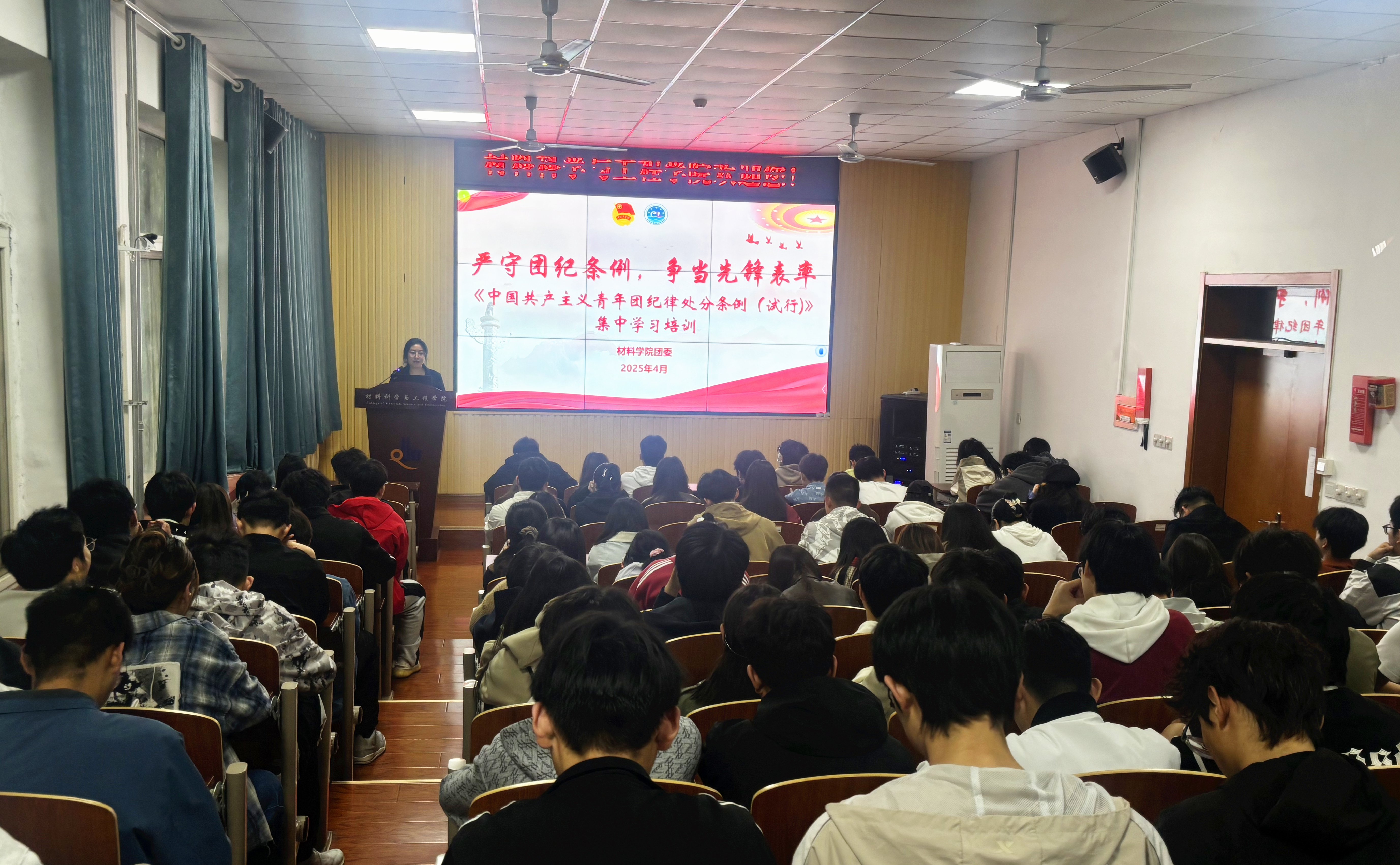 为进一步增强团员纪律意识,强化团员责任担当,4月21日,SUNBET申博团委于材料楼101报告厅开展“严守团纪条例,争当先锋表率”主题团课,团课由SUNBET申博团委副书记付文静讲授,全体2025年春季学期入团积极分子、各年级团支部书记参加培训。
