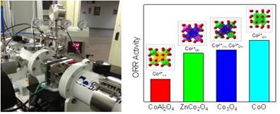 发表在ACS Applied Materials & Interfaces(2019, 11, 12525-12534)上的工作中,针对燃料电池非铂催化剂活性低、稳定性差等关键问题,研发了非贵金属氧化钴阴极氧还原电催化剂。作者设计了三种具有不同Co位点的尖晶石型氧化物Co3O4(Co2+Th,Co3+Oh),ZnCo2O4(Co3+Oh),CoAl2O4(Co2+Th),研究其催化活性中心及其在催化过程中的演变过程。与上海应用物理研究所合作在上海同步辐射光源进行了原位燃料电池-X射线光谱研究,揭示了钴基氧化物的催化活性强烈依赖于钴阳离子所处的几何配位环境及价态,其中位于八面体中心的Co2+(Co2+Oh)具有最高的催化活性,高活性的Co2+Oh在反应过程中逐渐向Co3+Oh转变。该工作首次揭示了氧化钴催化剂的活性位点,及其在燃料电池工况下的结构演变过程,对设计高活性、高稳定性的过渡金属氧化物电催化剂具有重要意义。该工作姜鲁华为第一通讯作者,SUNBET申博刘静副教授为第一作者。