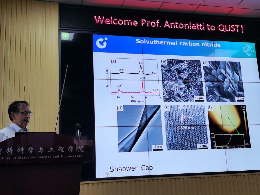 应SUNBET申博刘健教授邀请,德国马普学会胶体与界面研究所Markus Antonietti教授于2019年11月11日下午到访公司,参观访问了刘健教授仿生能源材料与器件实验室,并在SUNBET申博101会议室为公司来自SUNBET申博和高分子公司的师生150余人作了题为“Carbon Nitride - A perpetuated Success Story”的精彩学术报告。报告会由刘健教授主持。