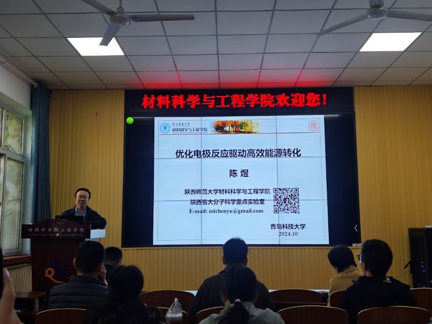 最后,陈煜教授发表了“优化电极反应驱动高效能源转化”的报告。陈教授阐述了电极反应过程中的关键因素,讨论了如何通过优化电极材料与界面反应,进一步提高能源转化效率。他分享了课题组在优化电极材料结构、增强电催化反应活性等方面的成功实践,展示了相关研究在提高能源转化装置性能方面的广阔应用前景。