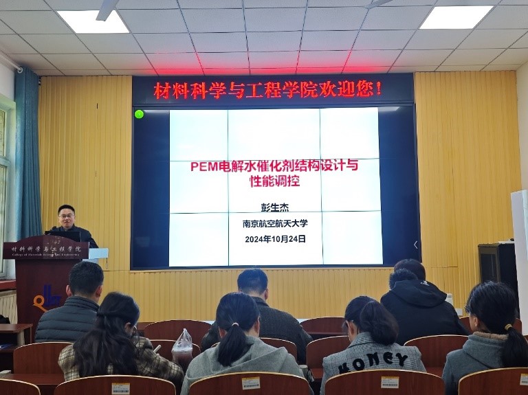 首先,彭生杰教授带来了题为“PEM电解水催化剂结构设计与性能调控”的报告。他详细介绍了在质子交换膜(PEM)电解水催化剂的设计和优化方面的最新进展,分析了电解水技术在清洁能源转化中的关键挑战,尤其是如何通过合理的催化剂结构设计提高反应效率。彭教授还展示了他们课题组的最新实验成果,这些成果在实现更高效、更稳定的电解水催化反应方面取得了显著进展。