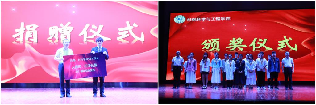 晚会现场,2021届毕业生党员代表向公司“纳米”基金发起捐赠,在致敬“艰苦创业 不断创新”的“纳米”精神的同时,用实际行动和爱心表达了对公司发展的关心和感激之情;为表彰2021届毕业生在党建、团学工作、优良学风建设等方面突出的集体和个人,公司党政领导为优秀集体和先进个人代表授“SUNBET申博突出贡献”奖牌。
