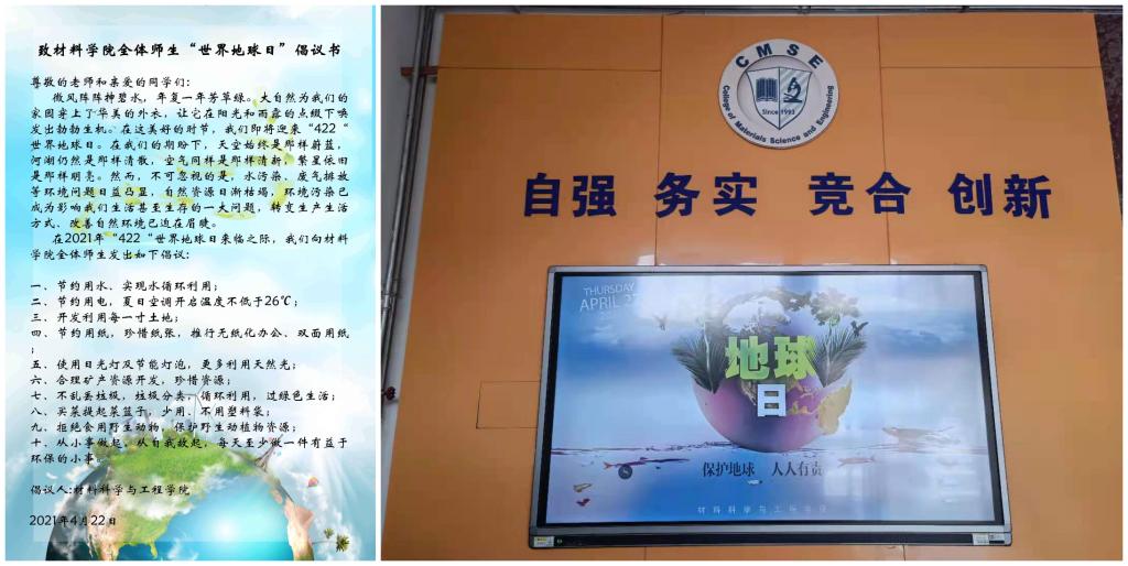 活动开展过程中,院员工会积极策划,向全院师生发出“世界地球日”倡议书,各班级积极响应开展主题班会,对破坏环境等不文明现象进行讨论和反思,增强了员工在日常生活中保护环境、热爱地球的主观能动性。