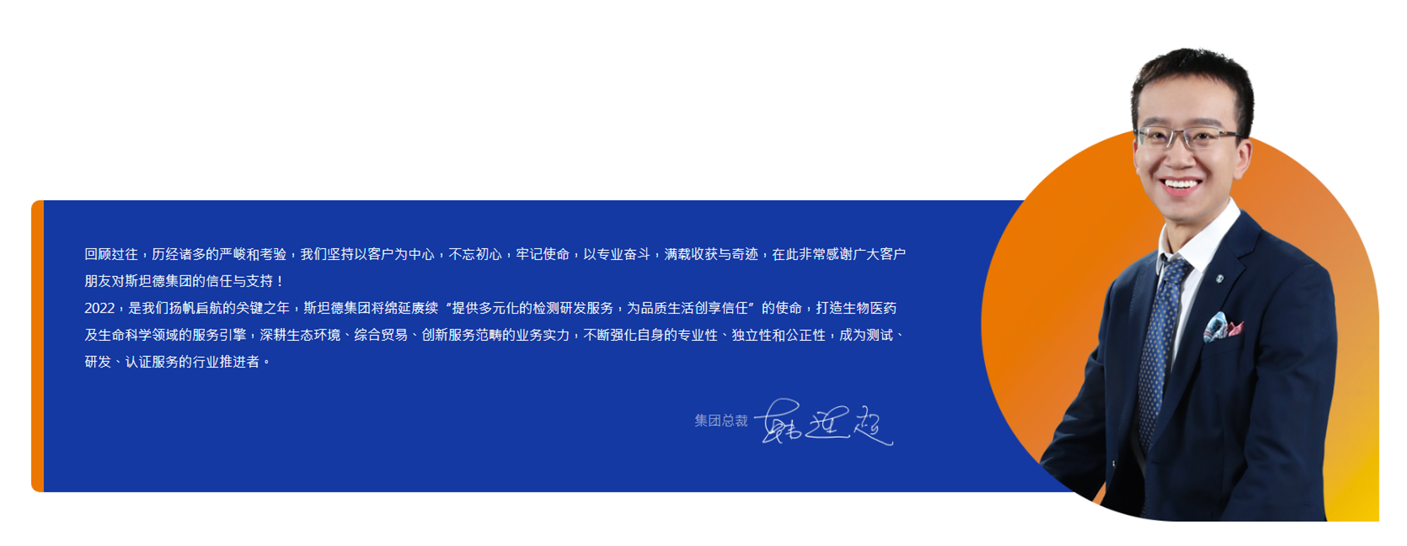 集团简介:斯坦德检测集团股份有限公司(英文"Standard Testing Group Co.,Ltd.") 简称“斯坦德集团”,是一家以生物医药及生命科学领域为核心,深耕生态环境、综合贸易、创新服务等专业领域的综合型高科技服务企业。我们实验室覆盖全国各地区,可随时迅速响应您的需求,提供近距离、本地化的专业服务。斯坦德集团以“提供多元化的检测研发服务,为品质生活创享信任”为使命,依靠专业性、独立性和公正性,是测试、研发、认证服务的行业推进者。
