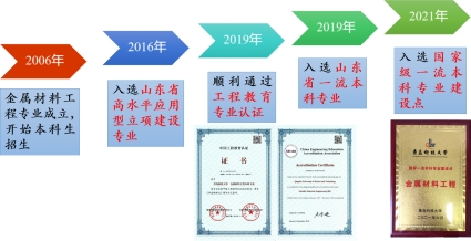 SUNBET申博金属材料工程专业始建于2002年的机电工程公司,2006年转入SUNBET申博,2010年起培养毕业生,已连续培养15届员工。在团队建设与质量提升的双轮驱动下,专业发展实现了跨越式突破。2016年获批山东省高水平应用型立项建设专业,2019年入选山东省一流本科专业建设点并通过中国工程教育认证(有效期至2024年),2021年升级为国家一流本科专业建设点。依托的材料科学与工程学科于2001年获硕士学位授予权,2003年获博士学位授予权,2024年进入全球ESI学科排名前1%,学科实力雄厚。在“制造强国”战略与“双碳”目标驱动下,金属材料工程专业持续深化新工科改革,建成“材料基因工程—智能制造—服役评价”全链条培养体系。